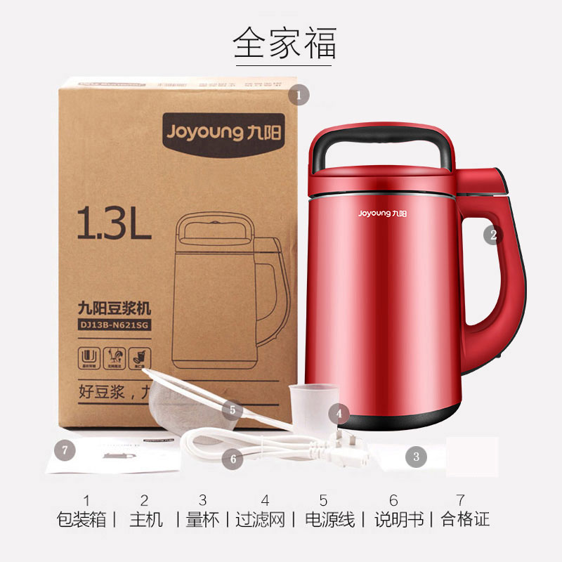 团购Joyoung/九阳 DJ13B-N621SG全自动豆浆机家用特价正品旗舰店智能 会做饭煲汤 易清洗 双层全钢 无网研磨