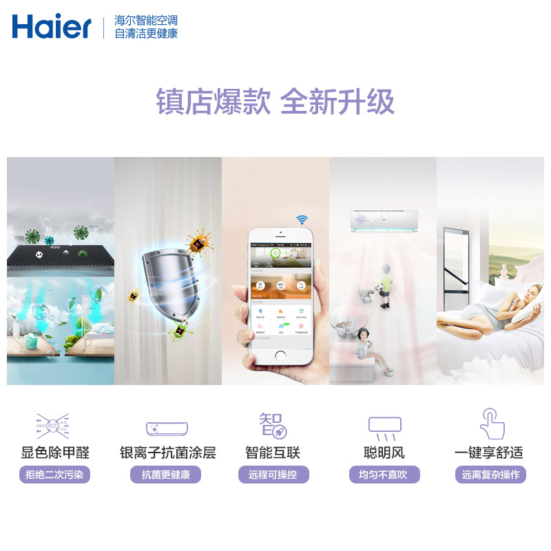 Haier/海尔 KFR-33GW/10EBBAL13U1 1.5匹智能壁挂式家用空调挂机 智能操控 快速冷暖 送装一体